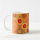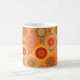 Mug com um padrão de arte floral abstrato em forma de colcha ou de retalhamento em cores ensolaradas quentes. Esta design é criada das imagens das flores.
