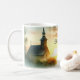 Caneca De Café Sunrise Church with Birds in Misty Meadow Text