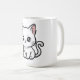 Charming white cartoon cat sitting with large, sparkling, adorable eyes.