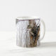 Esta caneca apresenta um gato de mesa alto em uma árvore que vigia sua propriedade