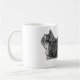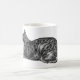Uma mesa de pata rasgada com patas e orelhas atadas, virada para a frente. A textura macia do ponto dá um impressão clássico em preto e branco. Uma picada quente para as manhãs de inverno e amigos apaixonados por gatos.