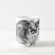 Uma tábua compacta de emalhar repousa com olhos brilhantes, escutando enquanto um campo suave de pequenos pontos adiciona um toque artesanal. O humor é quente e acinzentado, perfeito ao lado do cacau e dos caróis. Uma caneca de Natal emocionada para quem ama companhia felina silenciosa.