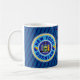Taça Bósniana Americana de Café de Nova York. Design bósnio de Nova Iorque, de cor azul e amarela, com a bandeira estadual de Nova Iorque no centro e a bandeira da Bósnia-Herzegovina nos lados.