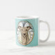 Tan Greyhound em forma oval sobre fundo verde-marinho.