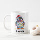 Envolva-se no espírito de feriado com este nome personalizado das Luzes de Natal Pinguim! Esta charmosa caneca de café de Natal apresenta um pinguim adorável embrulhado numa corda colorida de luzes de Natal, vestindo um chapéu confortável de Papai Noel. Personalize-o facilmente com qualquer nome para criar um presente de feriado único e engraçado para crianças, amigos ou qualquer pessoa que ame designs de animais festivos.