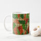 O ângulo é a arte de criar uma manta de retalhos de formas menores dentro de uma forma maior e preencher cada espaço menor com padrões. A design desta caneca de cerâmica apresenta uma mistura festiva de Vermelho, Verde e, claro, Dourada.