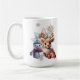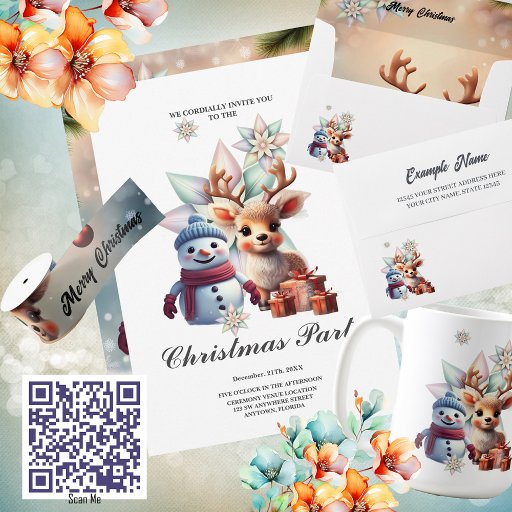 Tão doce esta pequena rena com o amigo o boneco de neve. Eles esperavam pelo maravilhoso tempo de natal com todos os presentes que queriam