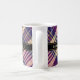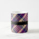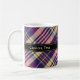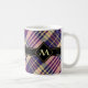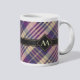 Design púrpura, ouro amarelo e tartã azul. Um padrão perfeito. Texto personalizado e monograma.