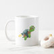 Tartaruga aventureira com uma mochila de foguete e óculos de aviador está voando com um sorriso feliz.