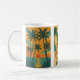 Tasse avec 3 images de plage, palmiers, femme à la olage