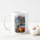 Linda caneca de café Tbilisi Georgia mostrando uma paisagem panorâmica e paisagem sobre a capital da Geórgia com seus incríveis e importantes prédios e marcos.