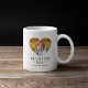 Caneca de café da mãe personalizada com 2 fotos da família em forma de coração fofo, as palavras "nós te amamos mãe" e os nomes das crianças. Pode ser mudado para qualquer relação!