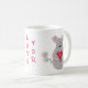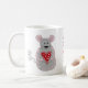 Um camundongo bonito segurando um coração vermelho... no centro da caneca diz "Ame-te" em letras vermelhas... design bonitinho para aniversários, dia de os namorados ou apenas para mostrar o teu amor...