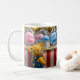 Adicione um pouco de doce ao seu café ou chá com esta charmosa caneca. A design apresenta um ursinho de pelúcia fofo em macacões azuis, em frente a potes coloridos cheios de algodão doce, cor-de-rosa e azul. A vibração alegre do carnaval torna esta caneca perfeita para crianças, adolescentes ou qualquer um que ame designs lúdicos e carinhosos. É uma ideia de presente adorável que traz alegria e nostalgia a cada gole. caneca, diversão carnavalesca, nostalgia de infância, ursinho de pelúcia, potes de doces de algodão, tipo cartoon, hiper-realista, fofo, colorido, alegre, todo público (crianças, adolescentes, adultos, compradores de presentes, amantes de ursos)