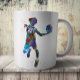 Artistic watercolor silhouette of a teenage basketball player printed on a ceramic coffee mug. The bright and modern design adds energy and creativity to any daily routine.