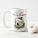 Este charmoso "Beary Felry Christmas Polar Bear Custom Coffee Mug" traz a inscrição brincalhona "Have a Beary Merry Christmas" em escrevendo decorativo, acrescentando um toque festivo e caprichoso às suas bebidas de férias. A design destaca um adorável urso polar branco vestindo um chapéu de Papai Noel, rodeado por uma exuberante vegetação natalícia, evocando uma alegre e aconchegante vibração de férias. Perfeito para beber cacau quente, café ou chá durante o feriado, esta caneca traz calor e alegria às suas manhãs de inverno. Também faz um presente delicioso, combinando diversão festiva com um toque prático e animador.