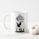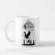 Uma imagem de uma águia em uma grande gaiola de pássaro que tenta travar alguns seres humanos para o almoço.