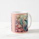 Nas profundezas vibrantes de um recife de coral, um majestoso cavalo marinho reina, suas escamas de pêssego e azul brilhando com um ar de serenidade. Cercada por uma tapeçaria de algas, estrelas e conchas. Essa criatura encantadora encarna a harmonia da vida oceânica. O fundo macio e gradiente em tons suaves de azul verde e rosa convida o espectador a entrar num mundo subaquático de tranquilidade e maravilha.