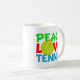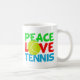 Eu adoro jogar tênis. Um bonito presente de caneca de jogador de tênis com uma bola amarela de tênis como O in Love. Paz e Tênis escrito em azul bonito e verde.