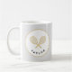 O tênis ou fã da sua vida adorará esta caneca personalizada de tênis preto, ouro e cinza com raquete de tênis dourado. Faz um presente maravilhoso para aniversários, feriados, Dias de as mães ou favoritos para festas. Parte de uma coleção da Parcel Studios. *Nota: O ouro neste produto é falho. Nenhuma folha de ouro real será usada na fabricação deste produto.
