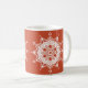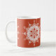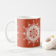 Esta mandala branca senta-se num fundo laranja escuro. As cores são criativas e quentes. Parte da Coleção Fenten Mandala.
