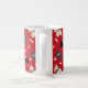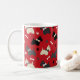 Cães escoceses, cinzas e cães escoceses que vestem arcos, com pegadas e ossos de cães em fundo vermelho.