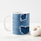 Caneca De Café Textura do tecido denim rasgada, matizes azuis.