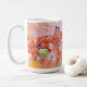 Everything is pink and warm tones from the background to the young lady hair, pink sky, pink tulips, stufftoys and etc