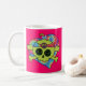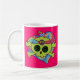 Crânio verde e bússolas, com manto de sinais de paz e colado em um coração de corante de gravata.