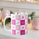 Este rosa quente festivo e caneca de rosa claro está cheio de menta e flocos de neve e personalizado com o seu nome. Esta caneca é um presente de Natal perfeito ou um presente de véspera de Natal do seu elfo - especialmente adicionado a uma cesta de presente de cacau quente e biscoito com outros itens coordenadores da loja da EmmyINK, como pacotes de cacau quente, um avental personalizado, cartão de receita, biscoitos e uma bandeja de "biscoito para Papais noeis". Use o modelo simples para adicionar seu nome e verifique o resto da coleção Cozy & Sweet da EmmyINK para coordenar presentes, decoração doméstica, cartões de natal e muito mais.