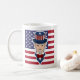 Mug com uma ilustração do Tio Sam com a bandeira americana como pano de fundo, 4 de julho, design patriota por Maxi Harmony / Radka Kavalcova