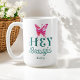 Café Cor-de-Rosa Verde | Olá, linda caneca de café | Citação em Tipografia Verde e Borboleta Rosa. Faz um presente ideal para qualquer pessoa, incluindo artistas, donos de salões, estilistas, garotas e para ela. | Inspiration Beauty Cote Mug |