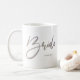 Põe a tua manhã com esta taça de café personalizada da noiva no brilho falso. personaliza com o teu nome ou elimina-o. Esta xícara também está disponível com impressão preto. Faz um excelente presente para a noiva que ama café, chá ou chocolate quente. Esta caneca também pode servir como um anúncio noivado em uma festa.