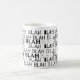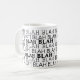 Tudo isso, Blah - Uma caneca humorística com a palavra Blah escrita em diferentes tipos.