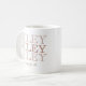 Uma caneca branca de base que apresenta um design de nome monolina com todos os bonés repetidos. A linha central é corajosa em argila empoeirada, com uma frase escrita "Eu único" abaixo. O layout mínimo equilibra a tipografia em negrito e o detalhe neutro suave para uma xícara cotidiana refinada.