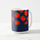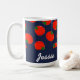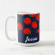 Adicione o seu nome neste tomate vermelho no design de padrão de fundo azul.