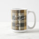 Se você está se perguntando que combinações de cores escolher para sua decoração de Natal e presentes este ano, eu criei coleções de padrões coordenadores para tornar a vida um pouco mais fácil. Esta caneca de café apresenta uma design xadrez moderna, aconchegante, mostrada aqui numa paleta colorida de tons de terra impressionante. Adicione uma mensagem e um nome usando o modelo fornecido. Procure ID1009 para ver outros produtos e padrões neste esquema de cores.