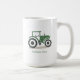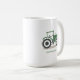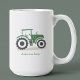 Uma caneca de café com uma ilustração de um trator verde e cinza em estilo cartoon e texto personalizável abaixo! Uma boa ideia para um presente para um fazendeiro ou um homem do interior!