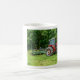 Um trator internacional mais velho com um reboque da semeação/propagador senta-se em um campo perto do bosque justo, Missouri. Esta é minha foto que foi transformada em uma pintura. Procurando mais impressões ou produtos? Sinta livre visitar minha loja: http://www.zazzle.com/timelessmomentsphtgy