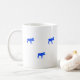 Tre blå älgar på en mugg. Anpassningsbar design.