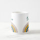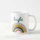Brilhe seu dia com esta caneca de café boêmia. Ele tem um arco-íris de vara em cores de mostarda, como mostarda, salmão, rosa e verde florestal. Diz "brilho" à esquerda e "brilhante" à direita, mas você pode personalizá-lo com suas próprias palavras ou nome. /fwc/b