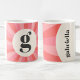Uma caneca moderna e moderna com o seu monograma inicial em cinzas escuras num círculo colorido creme num fundo rosado de explosão solar. Do outro lado está seu nome em um círculo colorido creme. Todas as cores podem ser editadas na ferramenta design.