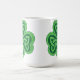 O design irlandês nesta caneca de café é um trevo celta do nó nas máscaras do verde. Excelente para comemorar o dia de St Patrick ou o algum dia.