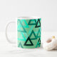 Esta design de caneca espalhou triângulos de tamanhos múltiplos em tons de verde-marinho.
