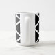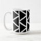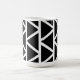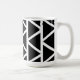 Black Triangles Coffee Mug projetado por Nisha Prabhu CuteHomeGifts. Os triângulos abstrato preto repetem o padrão monocromático.