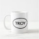 Verifique para fora esta caneca de Troy! É seu nome Troy? Ou você tem um marido, um namorado, um membro da família masculino ou um homem Troy nomeado amigo? Em caso afirmativo, esta "caneca do selo conhecido" é exatamente o presente que você está procurando! As características de design "Troy" na rotulação preta grande cercada por dois ovals, um fino e um grosso.
