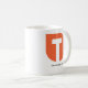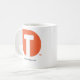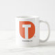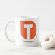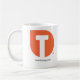 Caneca de café com o ícone da lágrima "T" da estratégia do Tim em dois lados com URL abaixo