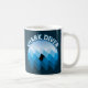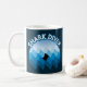 Design de gráfico da silhueta de barbatanas de tubarão. Mug para mergulhar que gosta de natação com tubarões.