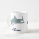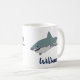 Esta caneca de café faz um presente personalizado de excelente para fãs de tubarões. Ele apresenta uma ilustração de um tubarão branco excelente e seu próprio nome ou mensagem curta abaixo em azul marinho.