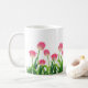 Esta caneca de café é mostrada com uma adorável impressão de tulipas rosa. Cor Branco Personalize este item ou comprar como está. Imagem do stock vecteezy.com